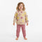 خلّي دولاب طفلك مليان بهجة مع تريننج الأطفال Smiley Flower! مصنوع من قطن ميلتون ناعم وخفيف على البشرة، الطقم المكون من قطعتين بيضم سويتشيرت بطبعة ورود مبتسمة مرحة وبنطلون مريح بنفس اللون.