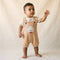 Because we know the importance of quick changes, the t-shirt includes dual shoulder snaps, and the overalls are equipped with convenient bottom snap closures. It’s the perfect blend of artisanal quality and practical design for your baby’s daily wardrobe.