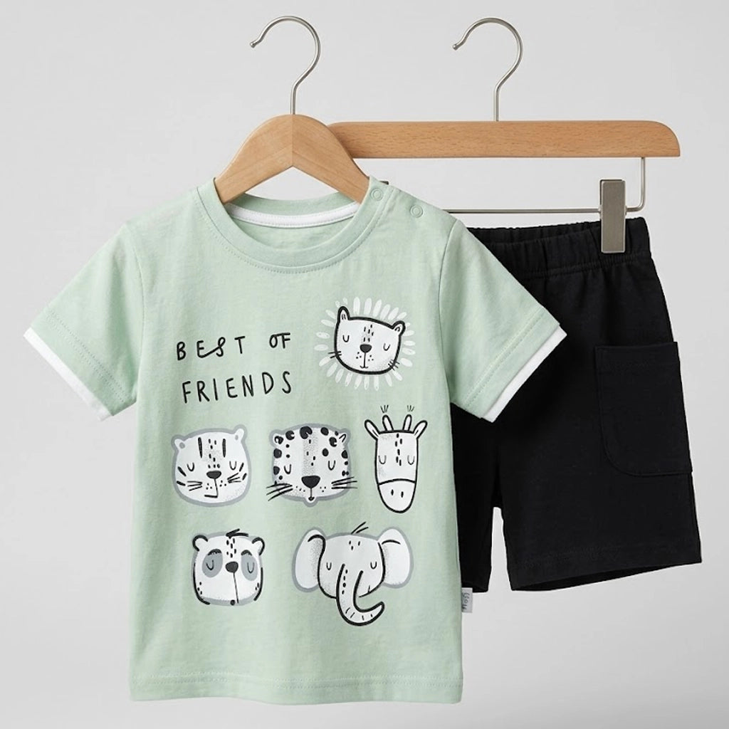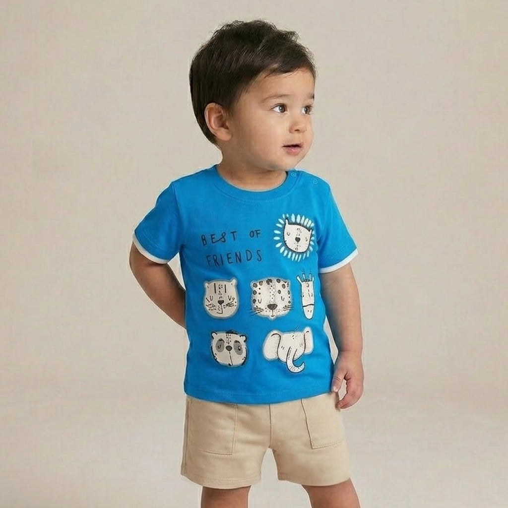 طقم “Best Friends” الصيفي مصمم مخصوص للأولاد من عمر 1 لـ 3 سنوات، يجمع بين الشكل اللطيف والراحة اليومية.