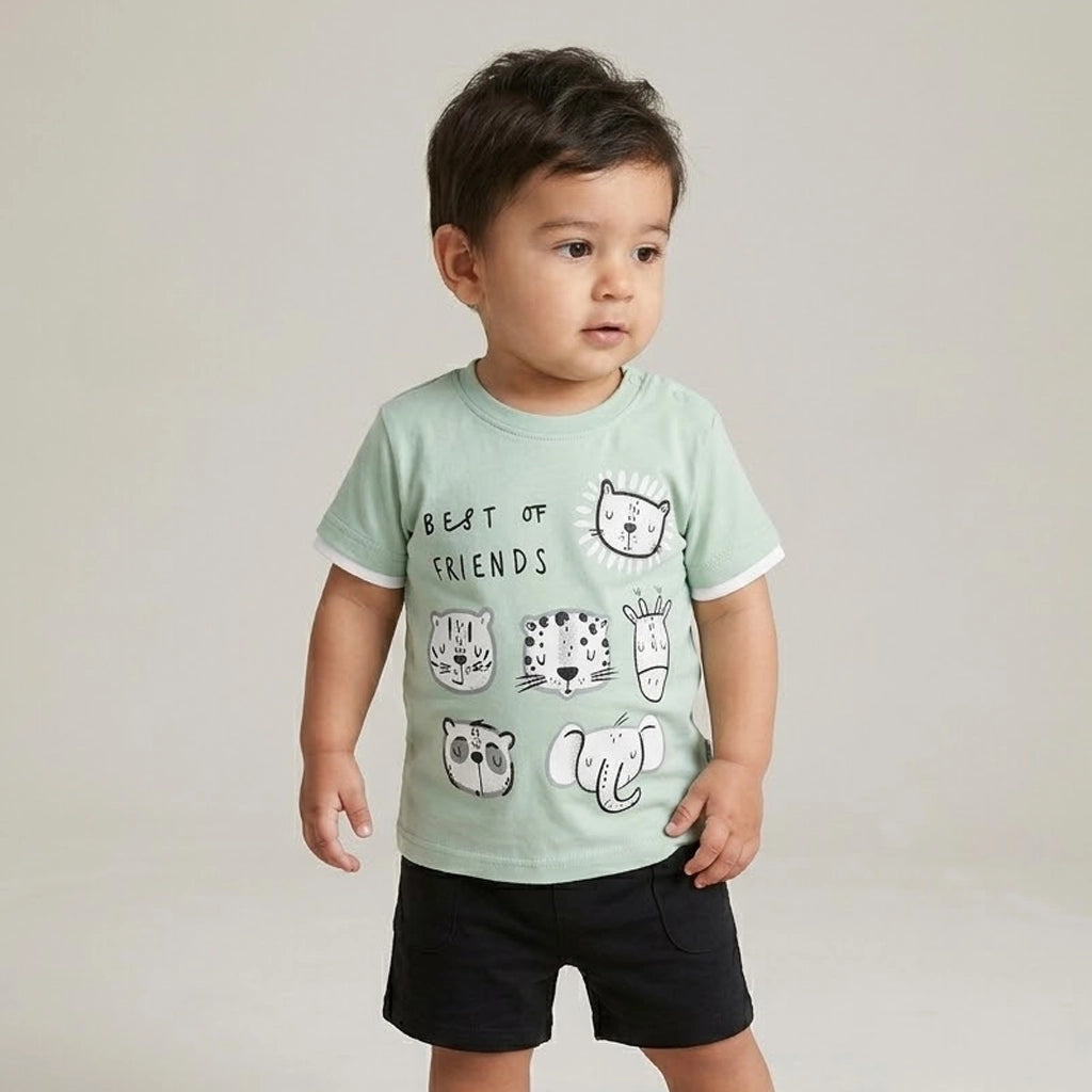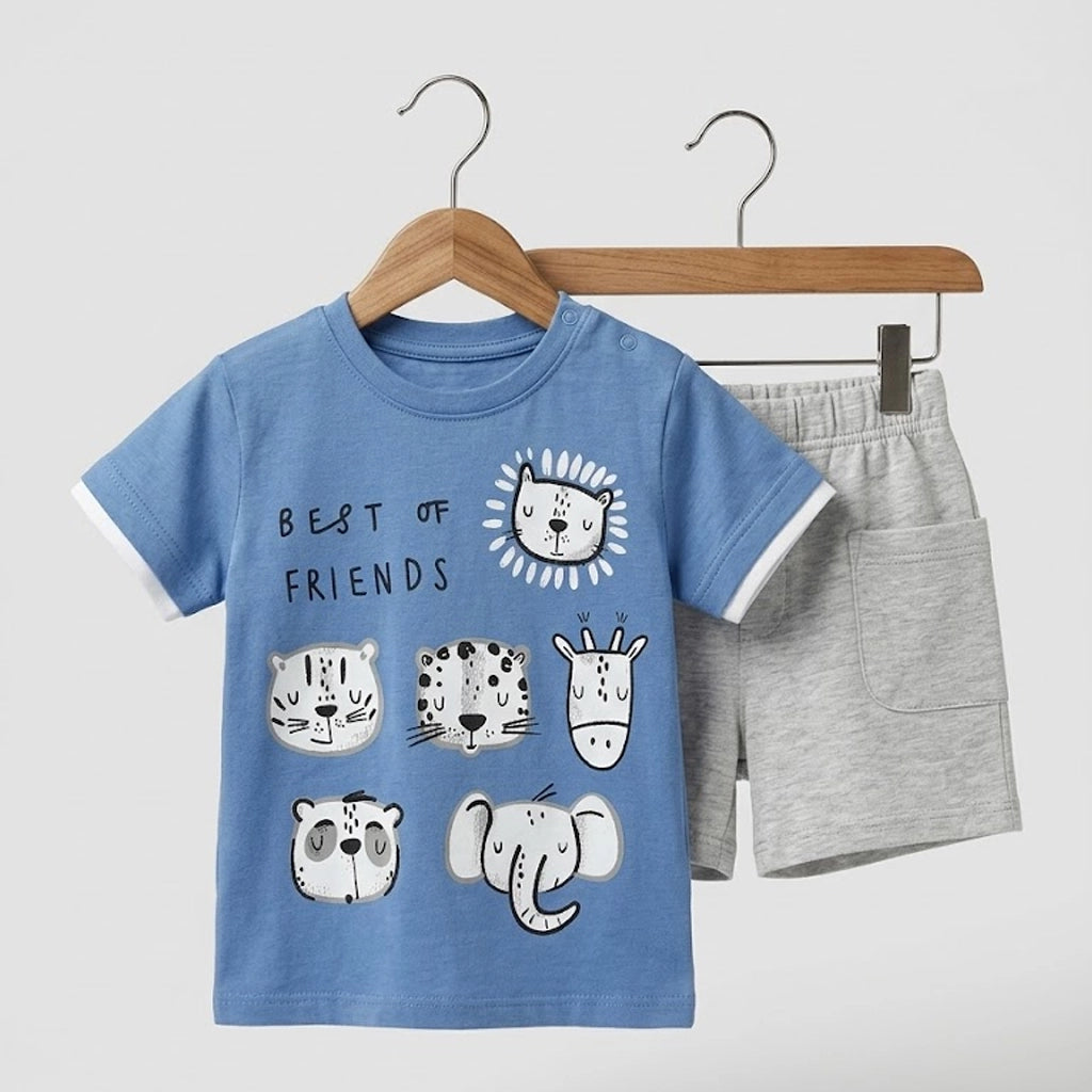طقم صيفي ولادي “Best Friends” برسومات الحيوانات | من 1 لـ 3 سنوات