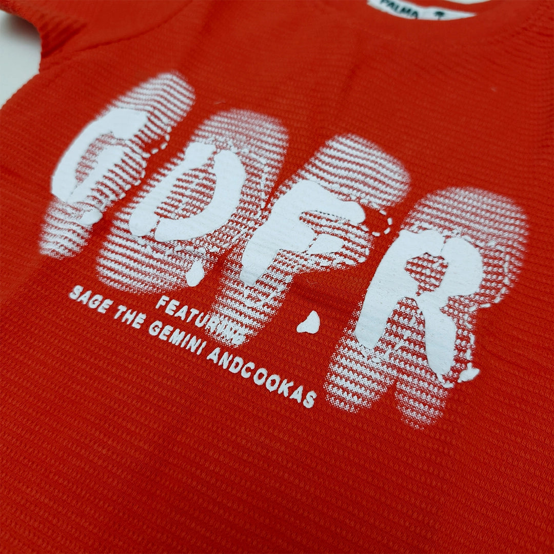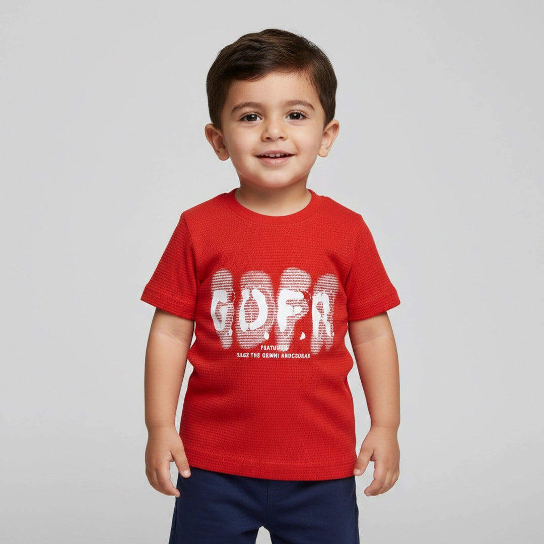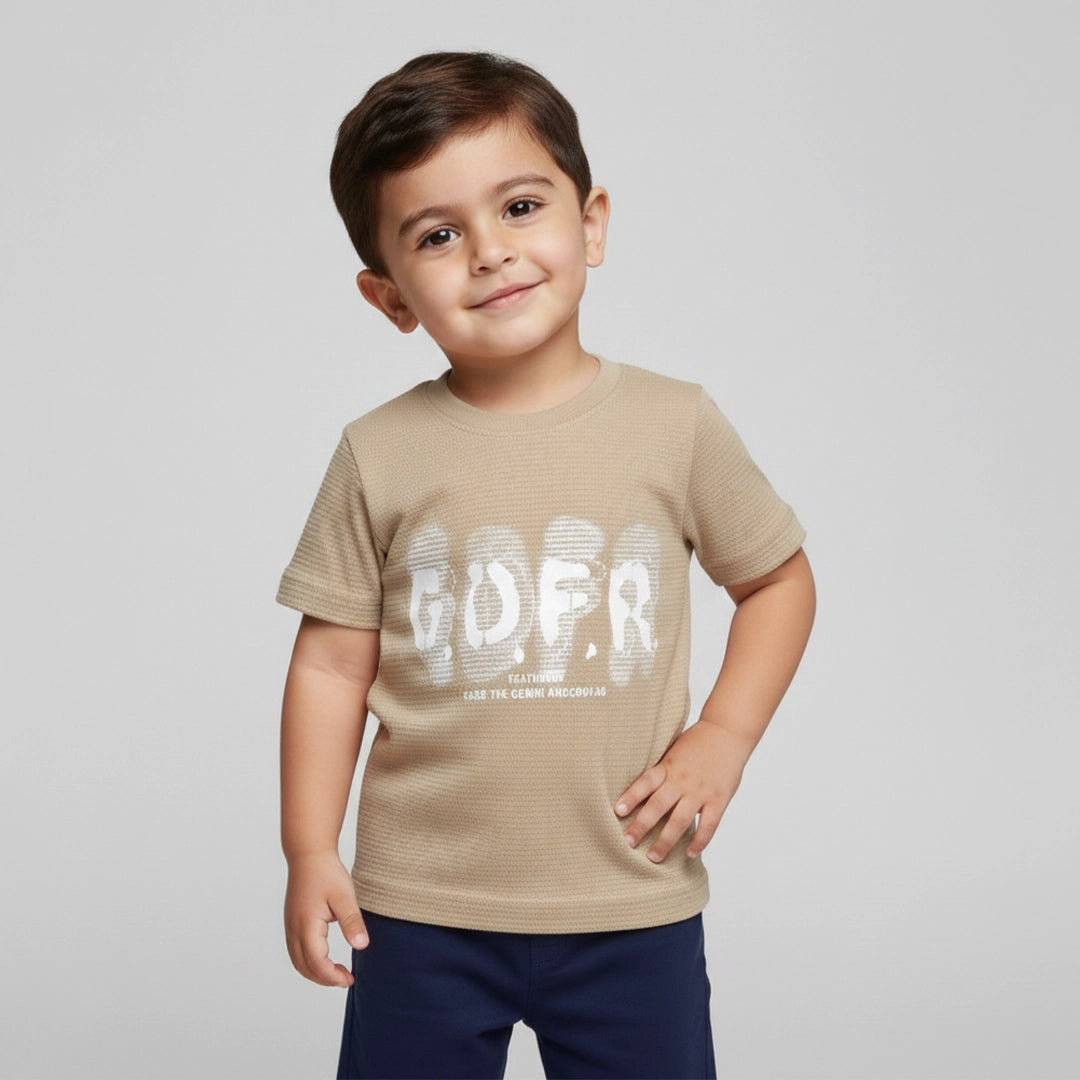 مصنوع من قطن ناعم ومسامي، علشان يكون لطيف على البشرة ويسمح بمرور الهواء ويحافظ على راحة طفلك طول اليوم. رسمة Gofer الجريئة بتضيف لمسة عصرية ومرحة الأطفال بيحبوها، وسهل يتلبس مع جينز، سويت بانت أو شورت.