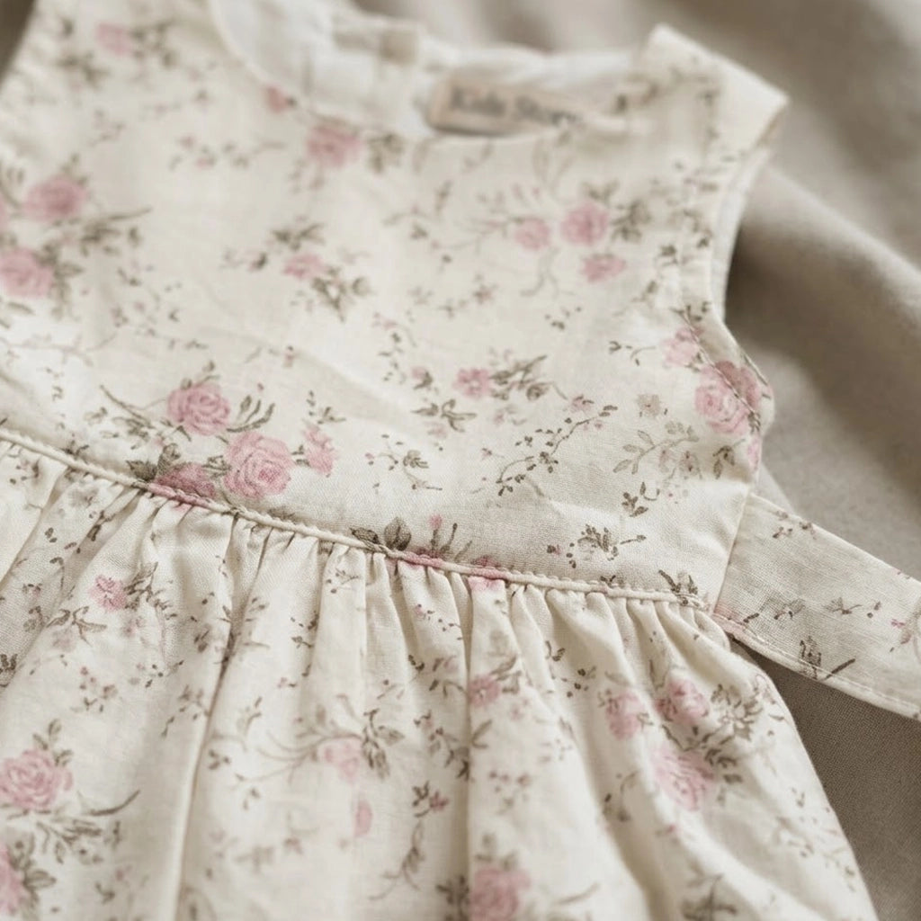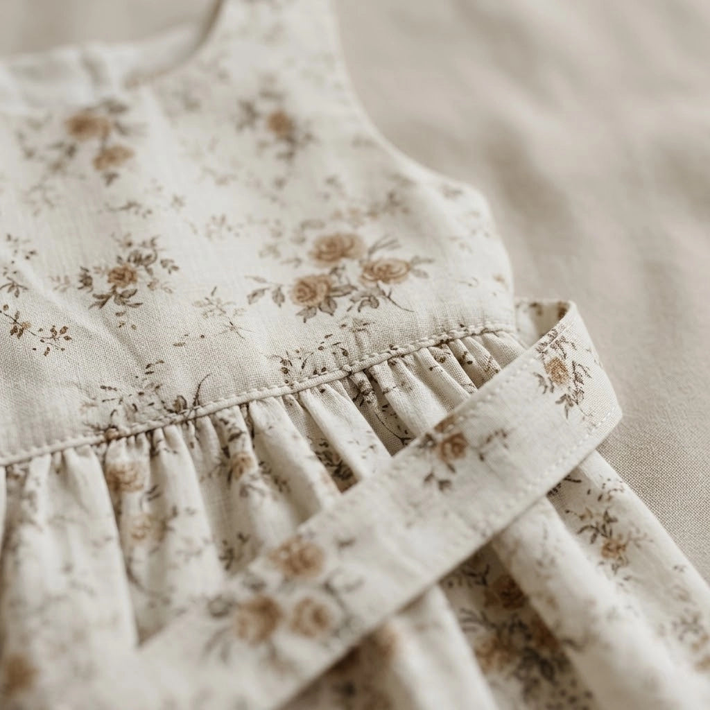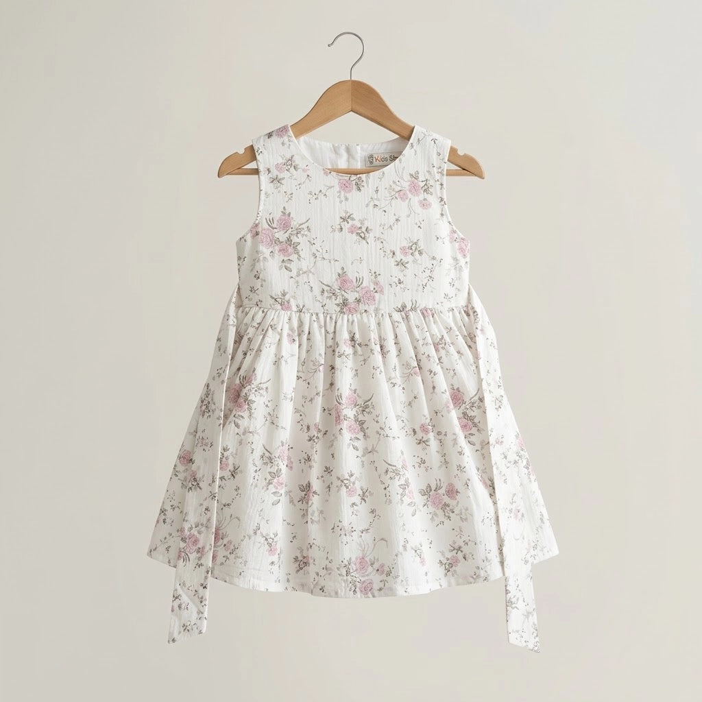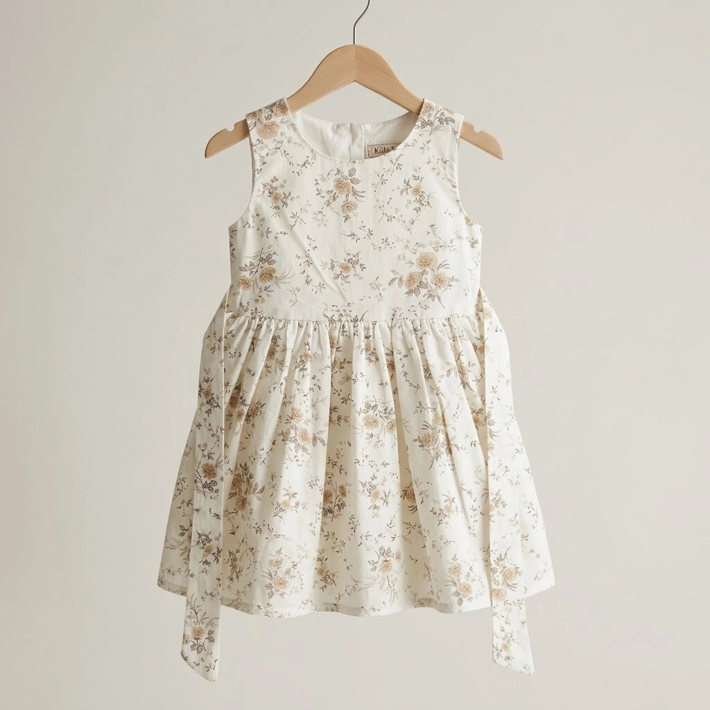 مصنوع من خامة خفيفة ومريحة بتسمح بتهوية كويسة، الفستان بدون أكمام وعليه نقشة ورد رقيقة بألوان هادية وطبيعية.