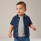 الطقم مكون من قطعتين: تيشيرت قطني ناعم من جوه، ومعاه قميص خفيف بأزرار نص كم. فكرة الطبقات بتدي لوك شيك ومميز، وفي نفس الوقت مريح وبيسمح بحرية الحركة لطفلك.