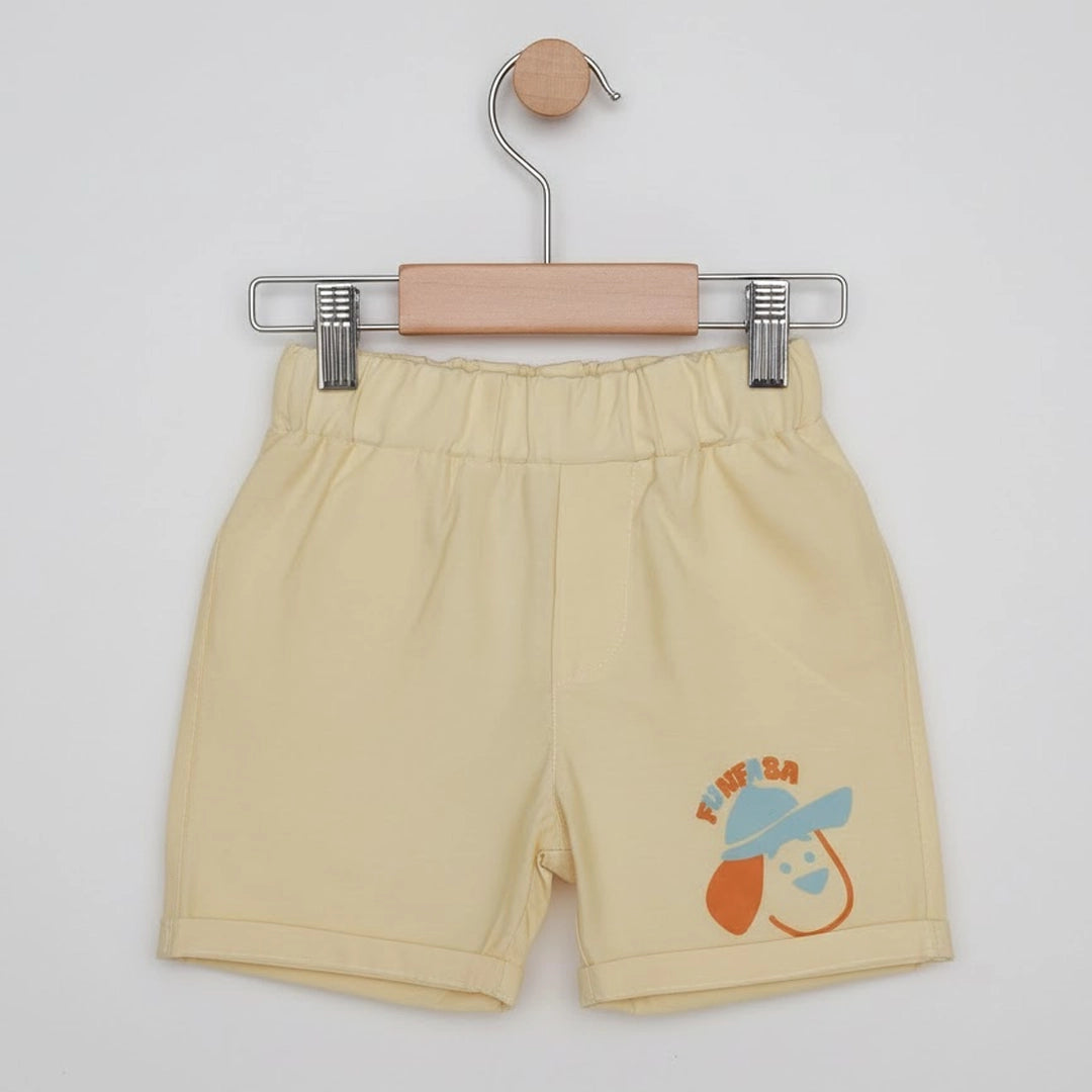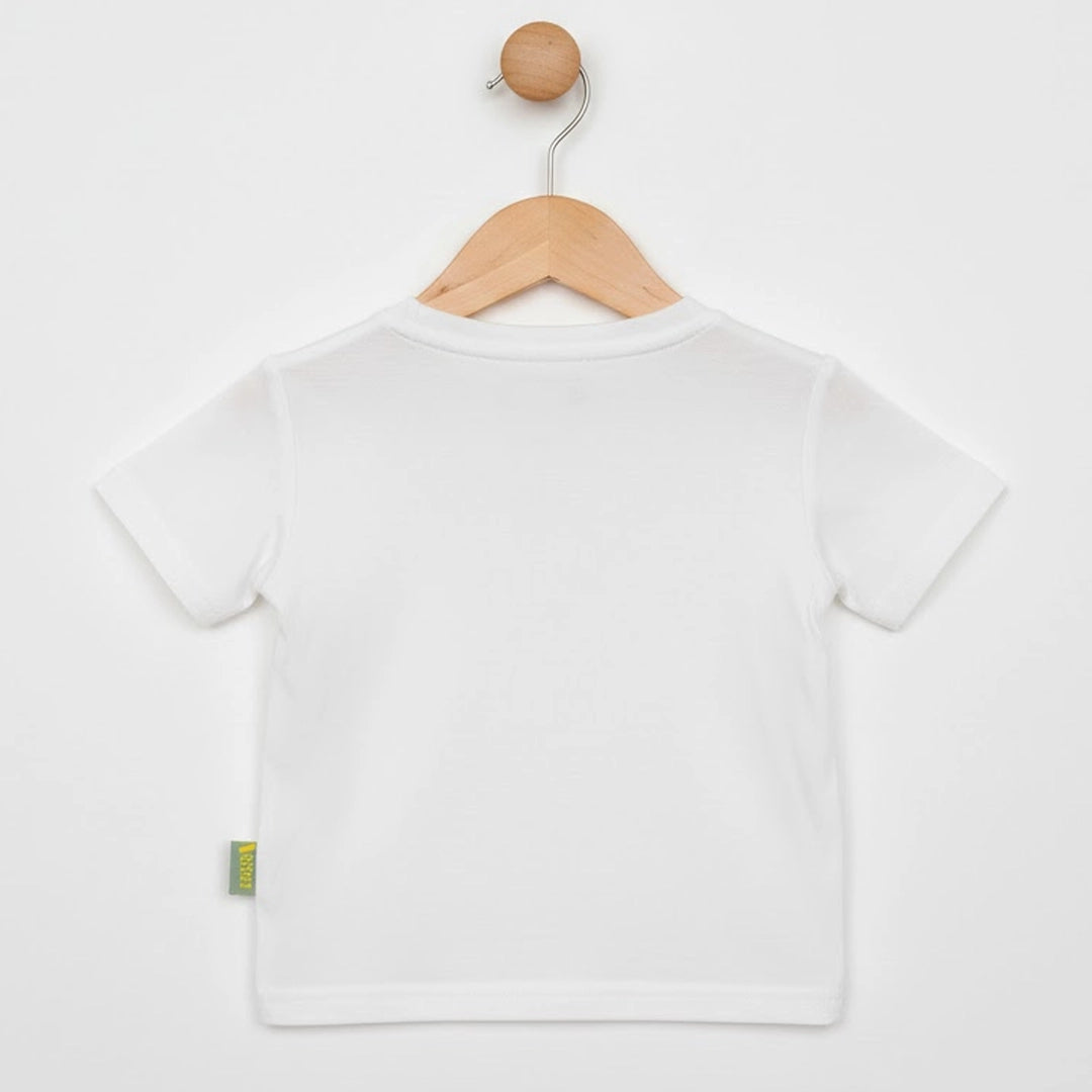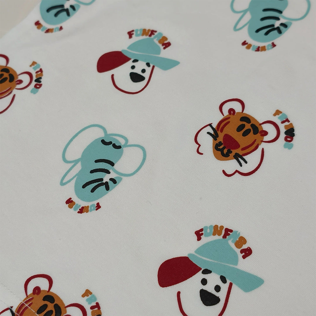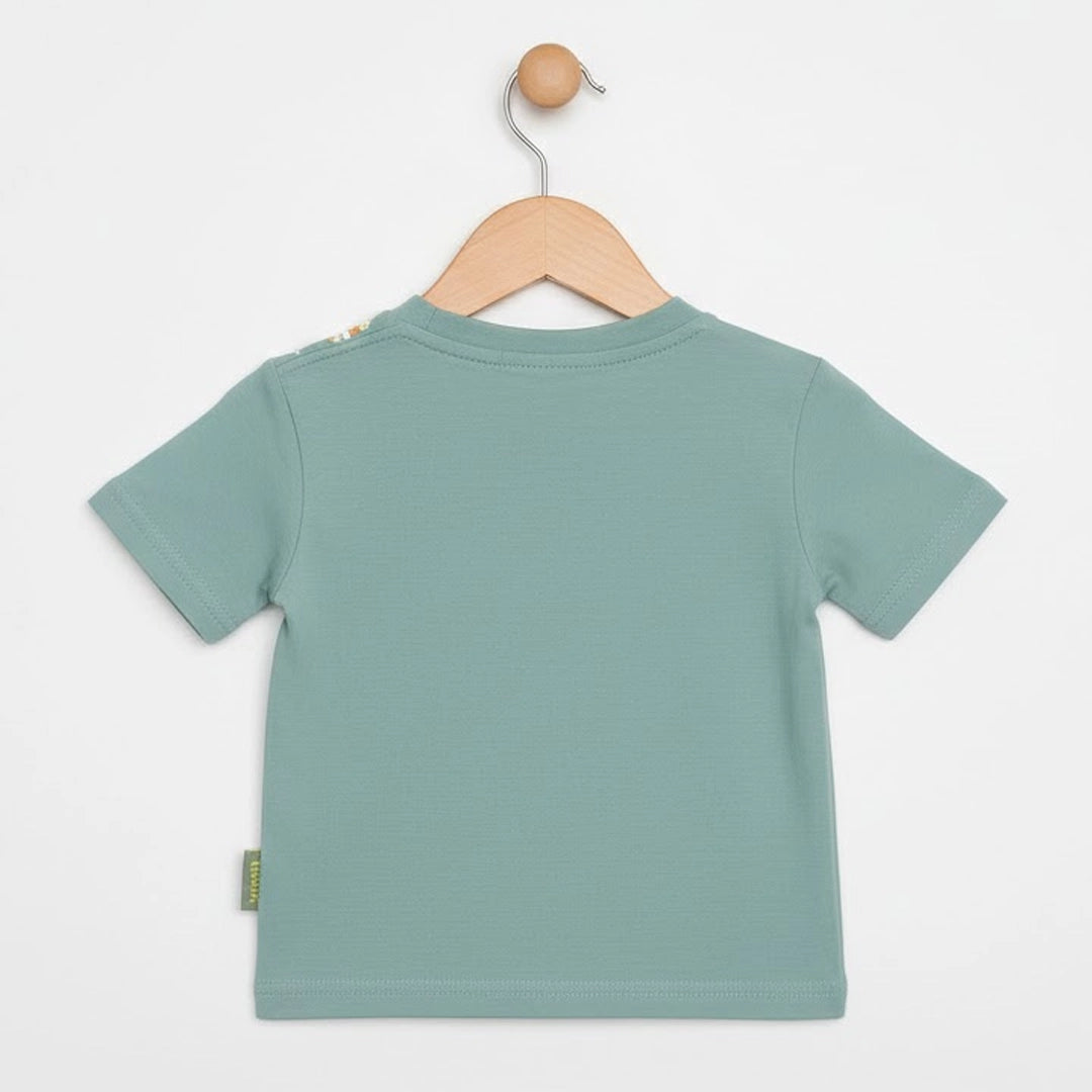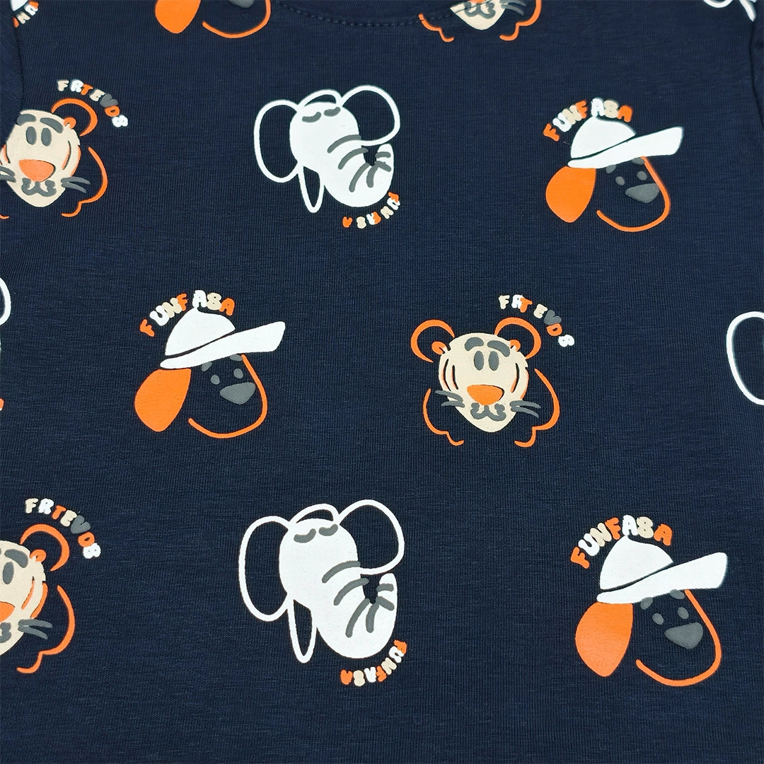 الطقم مكوّن من قطعتين: تيشيرت قطن ناعم برسومات حيوانات سفاري مرحة بتدي طابع مبهج ومغامر على اللوك اليومي، ومعاه شورت متناسق بخامة مريحة وخفيفة تدي حرية حركة كاملة للأطفال النشيطين.