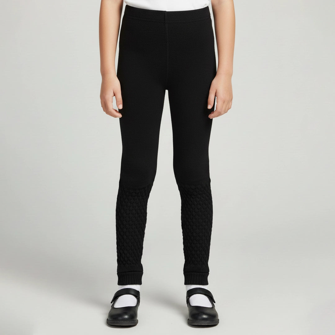 تصميم الركب المحبوك المميز مش بس بيضيف ستايل، لكنه كمان بيعزّز المتانة في الجزء اللي الأطفال بيستهلكوه أكتر أثناء اللعب. الوسط العالي المريح والمرونة العالية بيخلّوا الليجين يتحرك بسهولة مع بنتك وهي بتجري، تلعب، وتفضّل نشيطة طول اليوم.