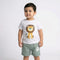 This charming two-piece set features a soft cotton t-shirt with an adorable lion illustration, paired with comfortable elastic-waist parachute shorts for easy movement and all-day comfort.