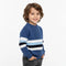 Crafted with premium quality yarn, this pullover features bold horizontal stripes across the chest and sleeves, paired with a subtle cable-knit texture down the center for that classic touch. The soft, breathable knit keeps your boy warm without feeling heavy — perfect for outings, or family weekends.
