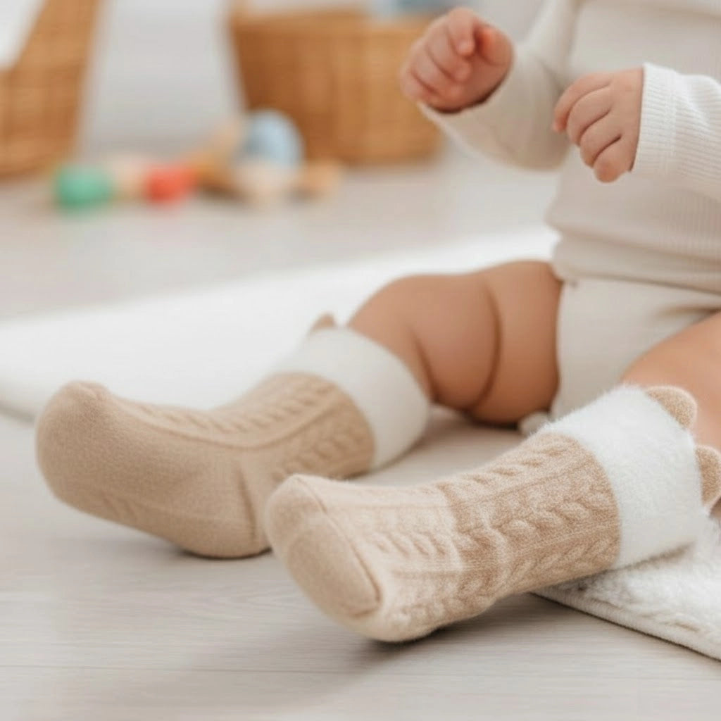 Made from a gentle knit fabric, these socks provide warmth without overheating and feel soft against sensitive baby skin. The cozy texture offers a snug yet flexible fit that stays comfortable throughout the day, whether your baby is relaxing, playing, or being carried.